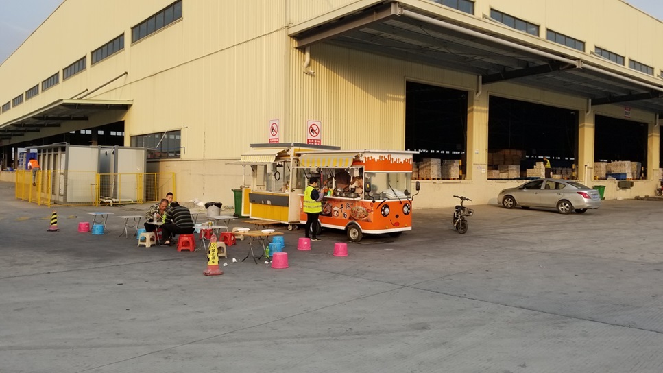如果吃腻了淘菜菜中心仓内的饭堂快餐,还可以选择走远一点,尝试其他分布在物流园不同分区的的流动摊贩和餐厅。可惜由于时间和精力有限,直到离开物流园,我都有没有机会把物流园内的饮食分布探索清楚。