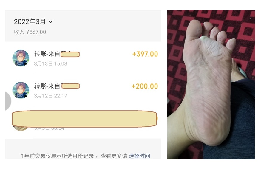 如考勤表所示,由我7号到达物流园签下合同开始,直到13日离开,共逗留1周,实际出勤5天,合计44.5小时。除去5元一天的水电费,我最后得到的,分别是597元的薪水和一个足底大水泡。