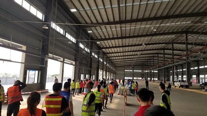 一成不变的日子就这样持续了几天,时间来到3月11日,广州新增一例本土新冠肺炎确诊病例。为了保住大家的绿码,物流园展开了一场核酸检测,园内工作者被分批动员前去采样。