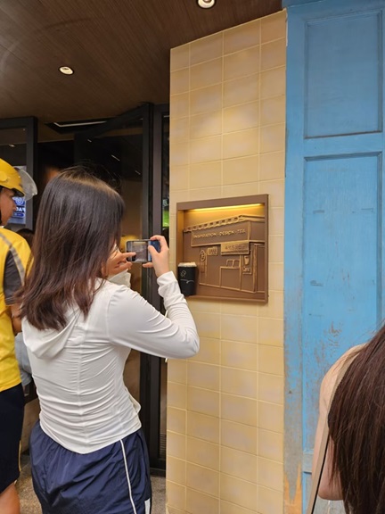吃罢喝足,踏上共享单车,在校园里绕了好几圈,便往下一个目的地,喜茶江边里创始店去。不曾想,前方居然还有84杯饮品等待制作中。光阴苦短,不能浪费!于是我抓紧等餐间隙,骑着自行车狂飙至影视剧《狂飙》打卡点「三十三墟街」。