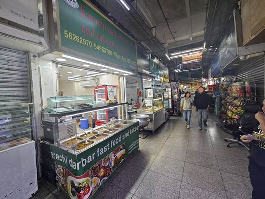 以位于3楼的「新德里咖喱王」为终点,从大厦正门出发,首先会经过几间外币兑换店,然后一眼望去可见一些零食杂货店和电子配件店。沿着通道一直走,还有各种各样的异国食店和托运集运店。看着来往的亚非裔面孔,我只觉得自己彷如置身于广州小北宝汉直街的国际商贸城,感觉也不是那么陌生。